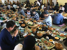 社長の乾杯発声と共に皆で豪華な海鮮料理を堪能しました。甘エビ、サザエ、カニ、鯛、ふぐの白子・・・っ大満足です!!
